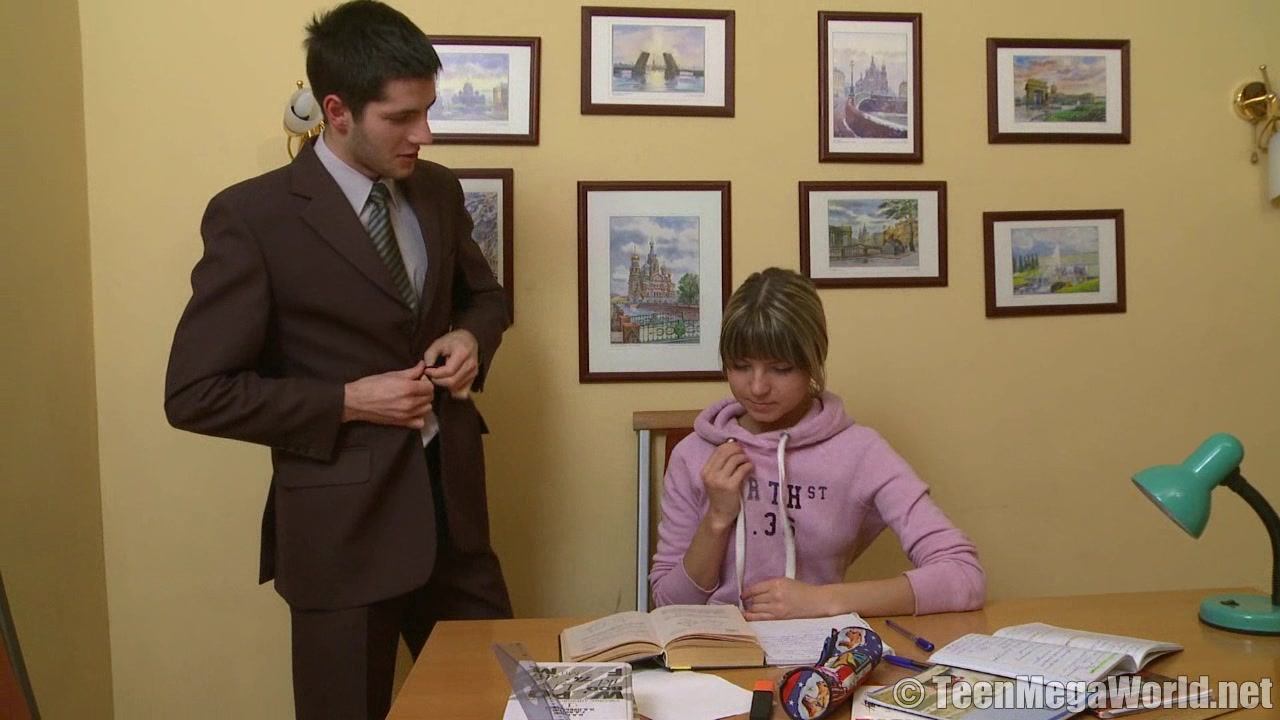 Девушка пришла на дополнительное занятие по геометрии и учитель начал ей объяснять основные правила. Но когда он стал чаще засматриваться на молодую блондинку, тем все больше у него начинал подниматься его член. Поэтому он сделал решительную попытку ей засадить и на его удивление девушка просто растаяла. Лежа на столе она раздвинула для него ноги, дала полизать, затем глубоко оттрахать и закончить спермой на лицо.