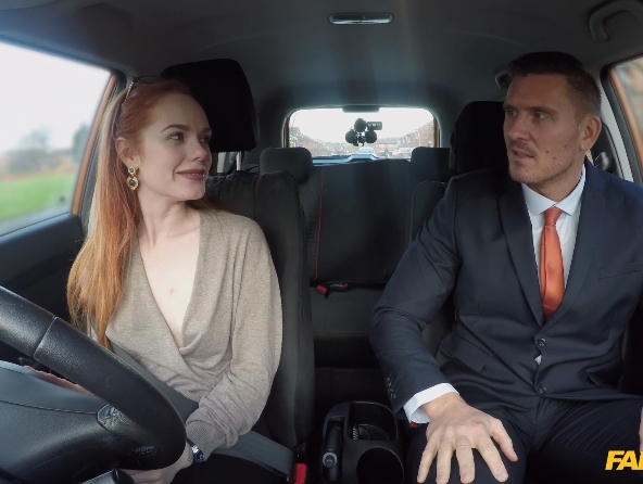 Рыженькая девушка трахнулась с водителем инструктором в машине